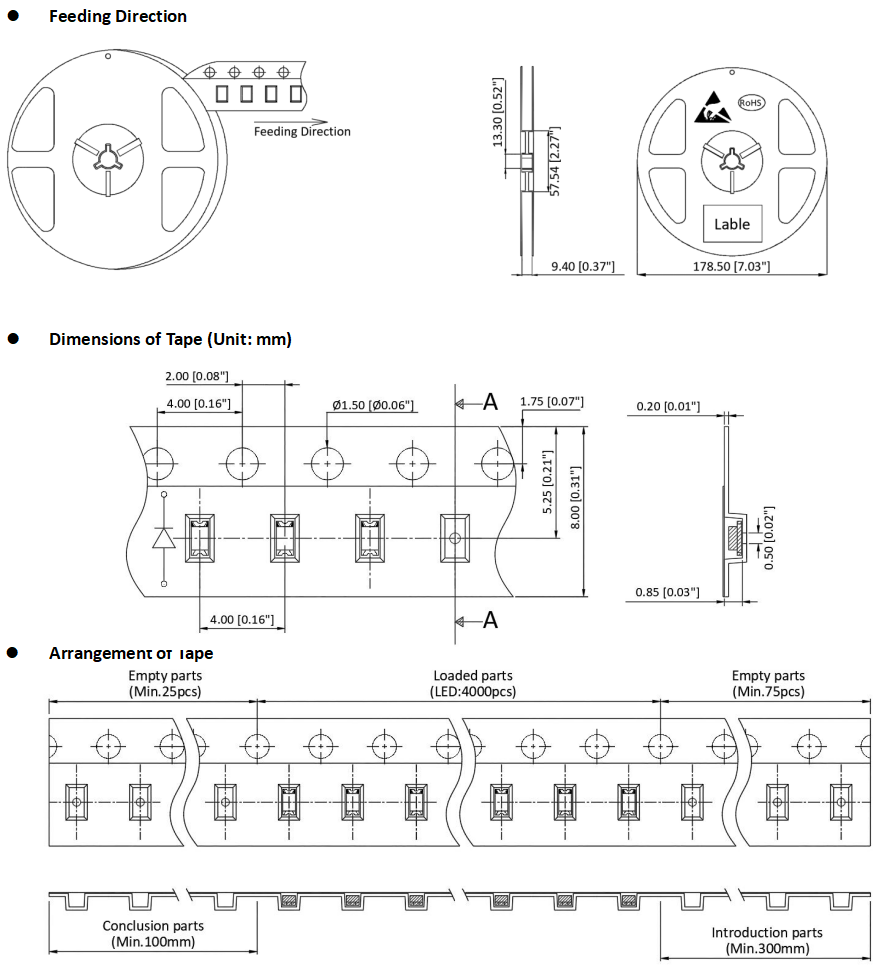1608 Series SMD Chip LED Lamps Packaging Specifications