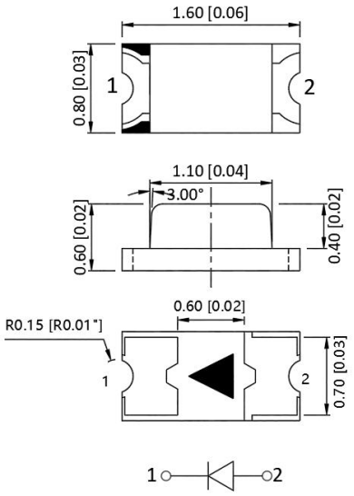 1.6mmⅹ0.8mm SMD LED, 0.6mm thickness
